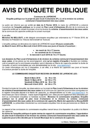 Enquête publique sur le Plan Local d'Urbanisme et la révision du schéma d'assainissement des eaux usées